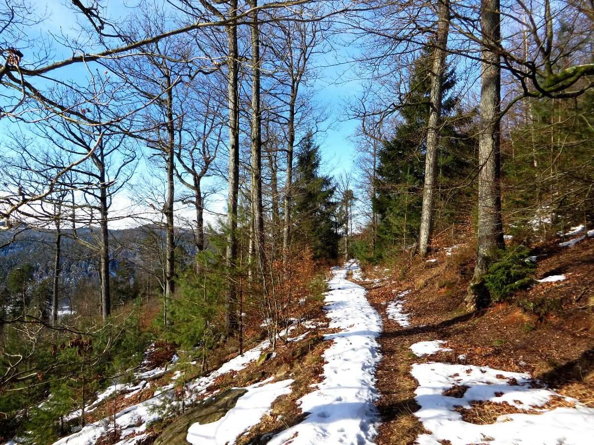 C'est par une température de -10° (au départ de St Quirin à 09h30) que nous avons effectué ce parcours balisé cercle rouge par le club Vosgien local avec une petite variante dès le départ ou nous avons préféré suivre le balisage + jaune de la Haute Chapelle au rocher du Lampertstein ce qui nous a permis d'emprunter un parcours plus aérien avec de beaux points de vue sur le village de Saint Quirin.