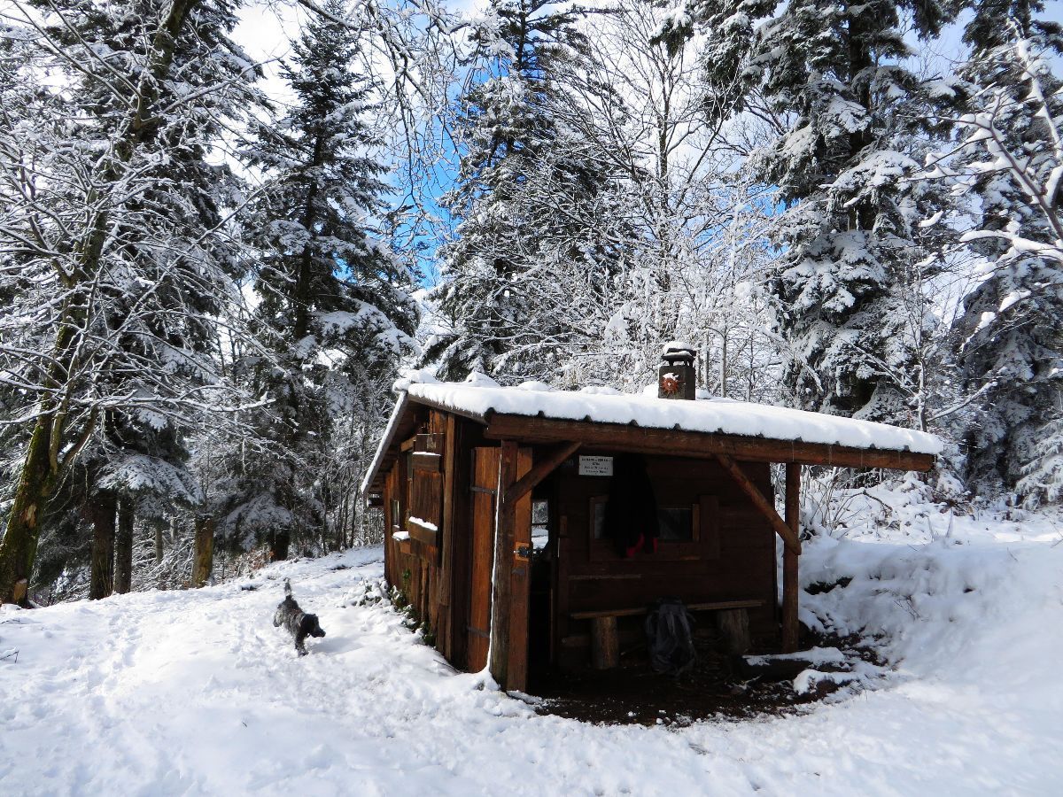 Peu de neige dans la vallée de la Sarre Blanche, mais il suffit de se rapprocher du Donon pour fouler une petite couche de neige fraichement tombée. Il n'en faut pas plus pour amuser Jimmy qui s'épuise à courir dans tous les sens, à la poursuite de gibiers imaginaires... ou pas !