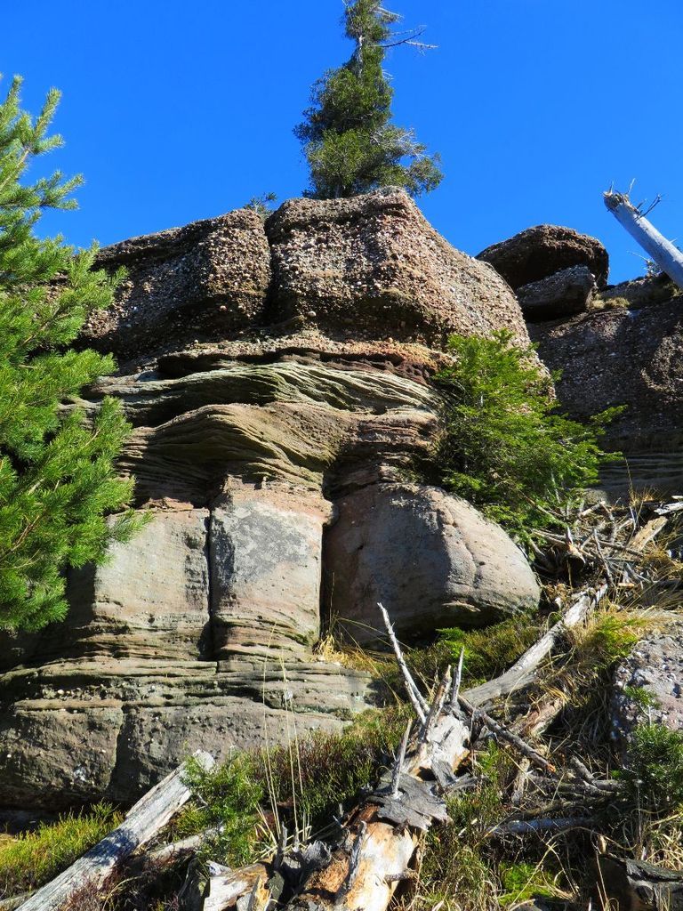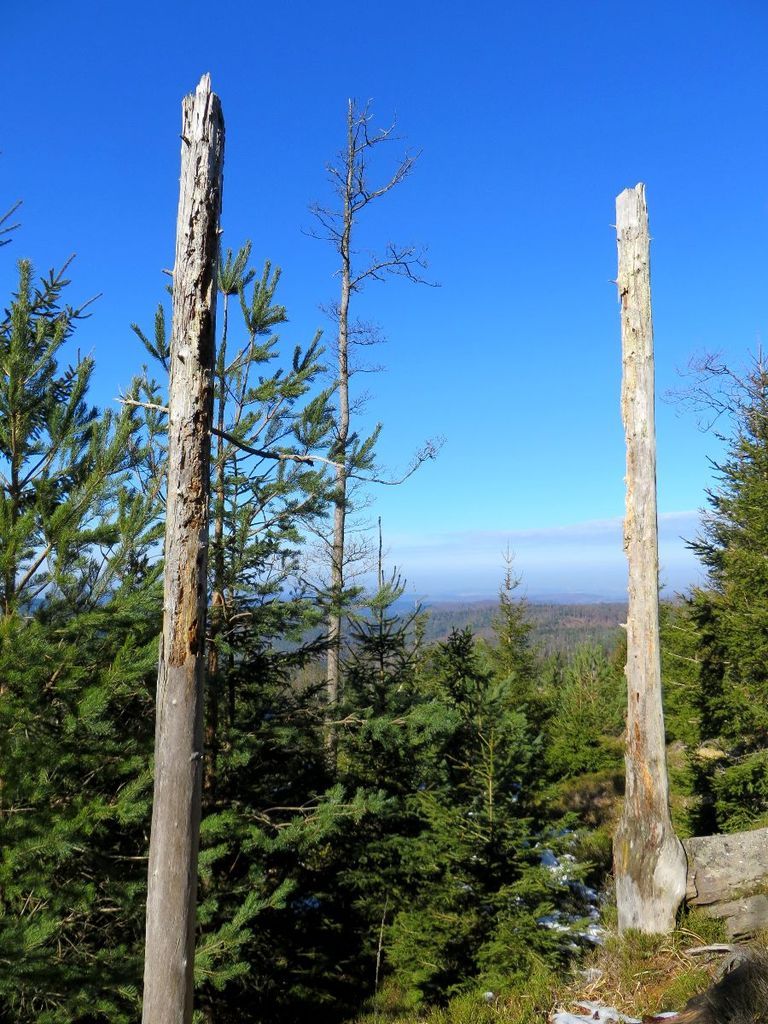 Seconde partie de cette randonnée effectuée sur le GR 5 entre Les Quatre Chemins et la Borne Brignon. Je viens de descendre de la Tête du Calice et je reprends le GR 5 pour continuer ma randonnée en direction de La Main de Fer. Comme il est encore un peu tôt pour investir l'abri Bechler, la salle à manger du jour, je poursuis un peu ma marche en direction de la Borne Brignon puis j'entreprends l'ascension de la Tête du Fresillon aussi appelé Fresillon avec ses 720 m d'altitude. Là non plus il n'y a pas de chemin balisé et même pas de chemin du tout pour y monter. Il faut se débrouiller pour trouver un passage entre les sapins, les pins, les rochers ... mais une fois là haut la vue est grandiose et on y voit même très bien le Donon et son petit frère le Petit Donon.