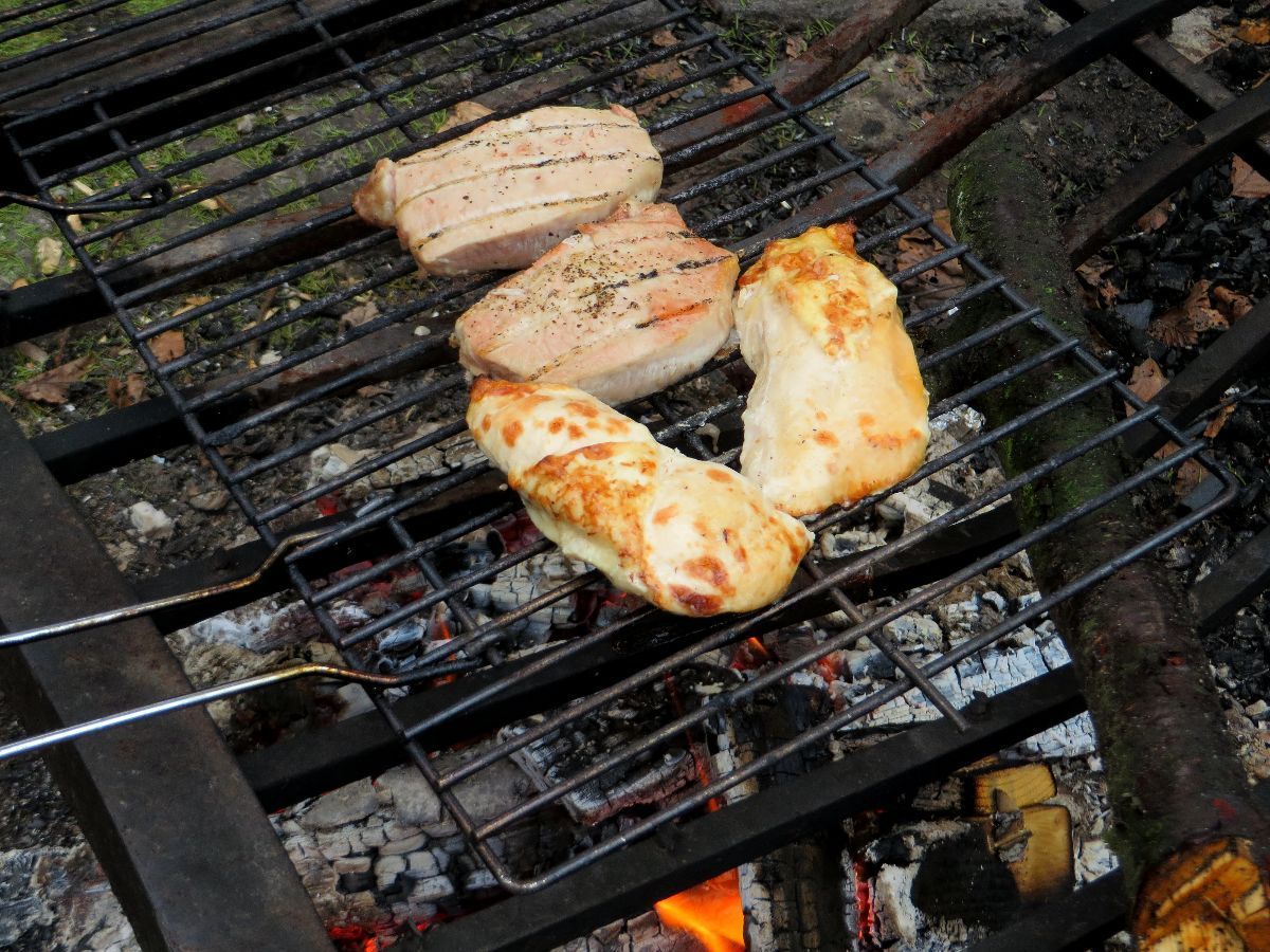 C'est l'occasion aussi de faire quelques grillades au col Entre les Deux Donons. Le feu a pris, malgré la pluie et l'humidité ambiante. Pardi, j'avais tout prévu, même du bois sec en quantité suffisante pour faire un bon tas de braises.